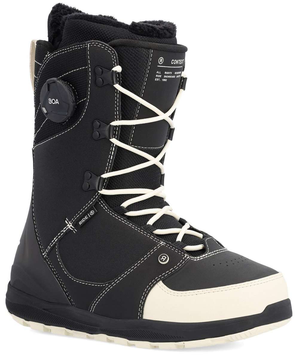 The Context is a high-end women’s lace snowboard boot. The traditional lacing system gives the rider the ability to lace their boot exactly how they want it. Fitted with Intuitionâ„¢ Mobile Wrap Liner and mixed with a traditional lace and our BOA® powered Tongue Tiedâ„¢ Fit System, it’s snug and comfort at the highest level. Tongue Tiedâ„¢ delivers a secure fit in the ankle and eliminates the need for a traditional harness. C.A.T. technology allows for a custom fit in the calf zone for increased comfort. The Context is designed as a stiffer flexing snowboard boot that is as at home in the park as it is on a powder day. The Zig-Zag Flex Sole combines rubber with a +Slime Midsole for durable traction and comfort while internal shank adds support. The Context is designed as a stiffer flexing freestyle snowboard boot.